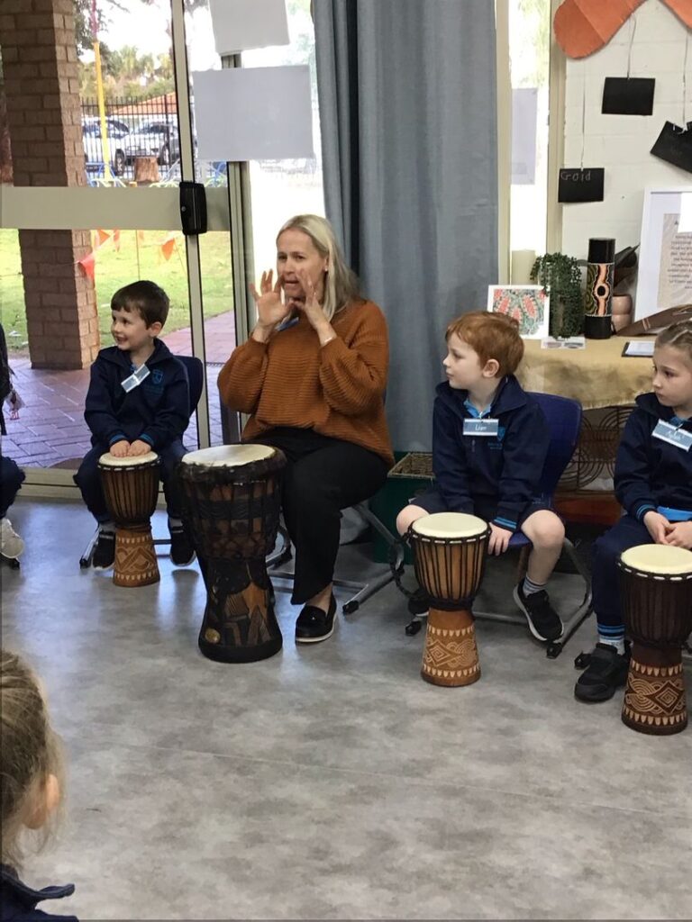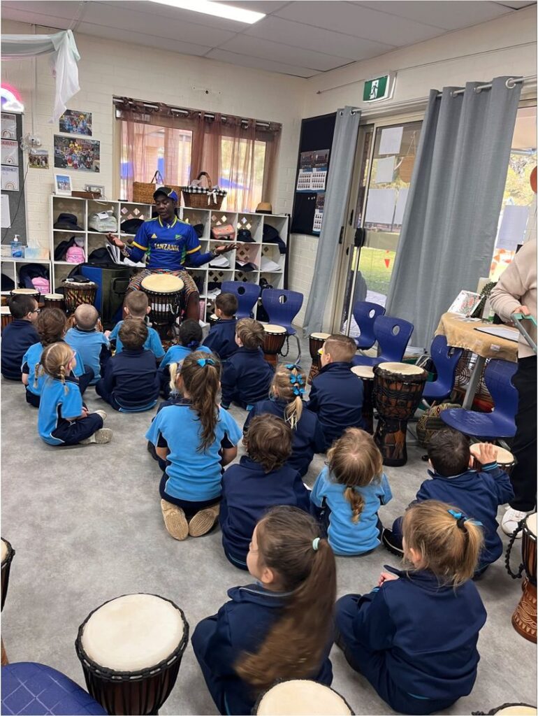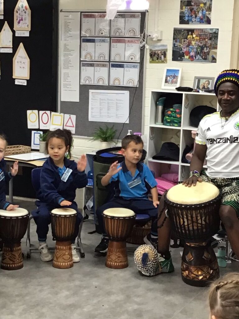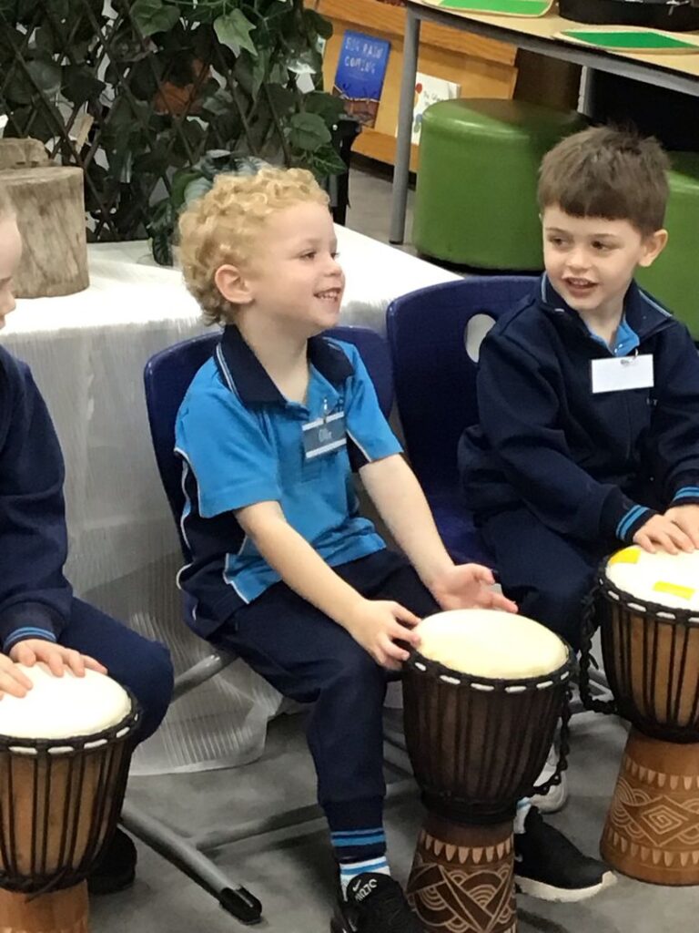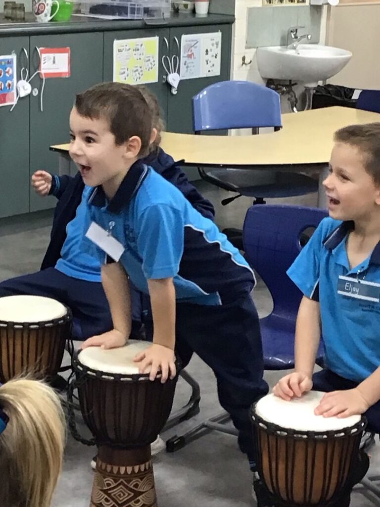 This week Kindy attended a drumming Incursion, this was hosted by Rhythm Culture. During this lesson we learnt how to play Djembe drums, using our fingers to make music on the skins of the drums . Djembe drums are an African instrument made from animal skins, some animal hair with traditional patterns carved into each drum. During this incursion, each child played their own drum and learnt unique fun musical patterns which incorporate the dynamics of sound, tempo and rhythm.