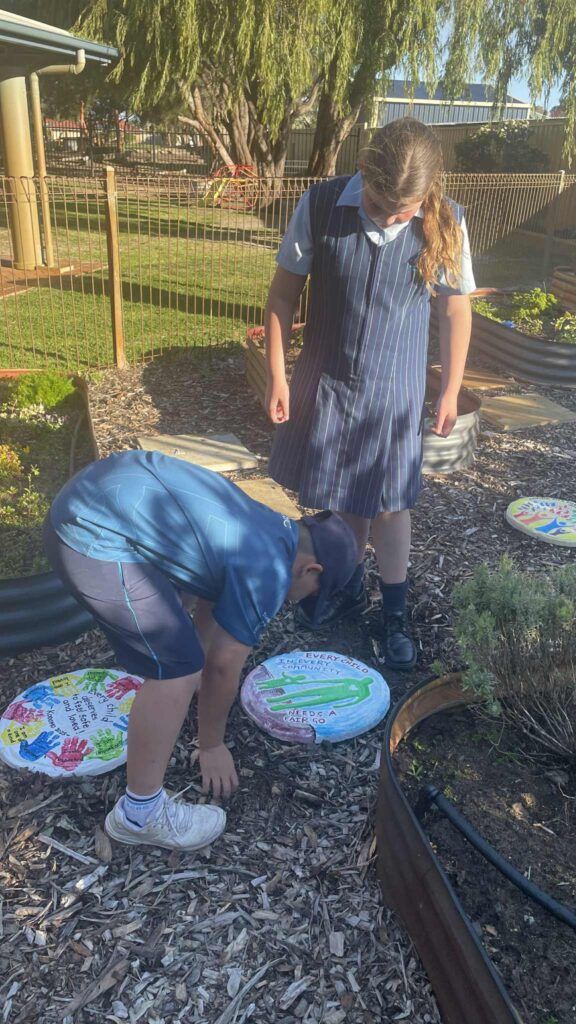 Some of our older children had the wonderful opportunity to help lay out stepping stones in our Wild Space Garden area for Child Protection Week. They got to work together to carefully place the stones, so they were clearly visible and spaced closely enough for children of all ages to walk on and enjoy.
